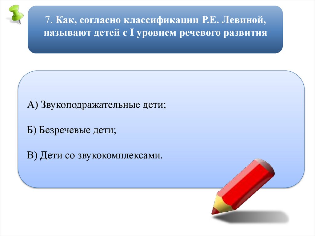 7. Как, согласно классификации Р.Е. Левиной,называют детей с I уровнем речевого развития