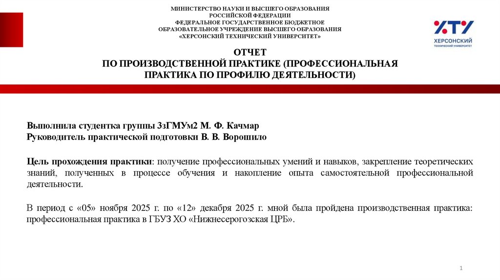В период с «05» ноября 2025 г. по «12» декабря 2025 г. мной была пройдена производственная практика: