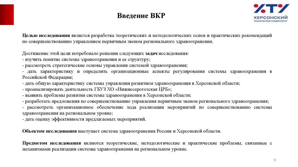 Введение ВКРЦелью исследования является разработка теоретических и методологических основ и практических рекомендаций