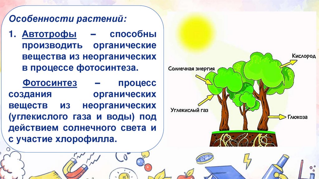 спорами,2. Питание путём 3. Неспособность 4. Размножение