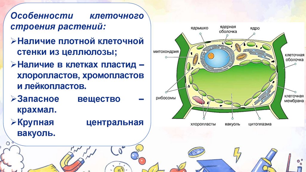 Растения бывают:Низшие – одноклеточные или многоклеточные, но не имеют