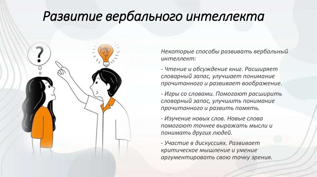 Развитие вербального интеллектаНекоторые способы развивать вербальный