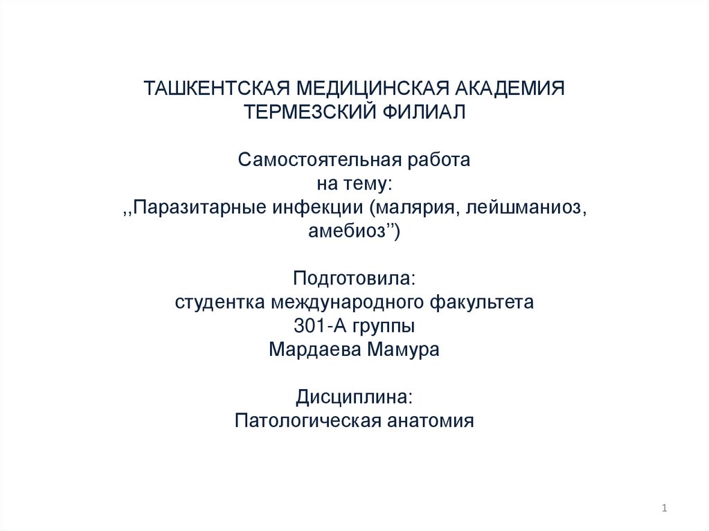 ,,Паразитарные инфекции (малярия, лейшманиоз,