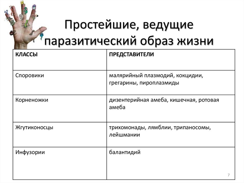 Простейшие, ведущиепаразитический образ жизни