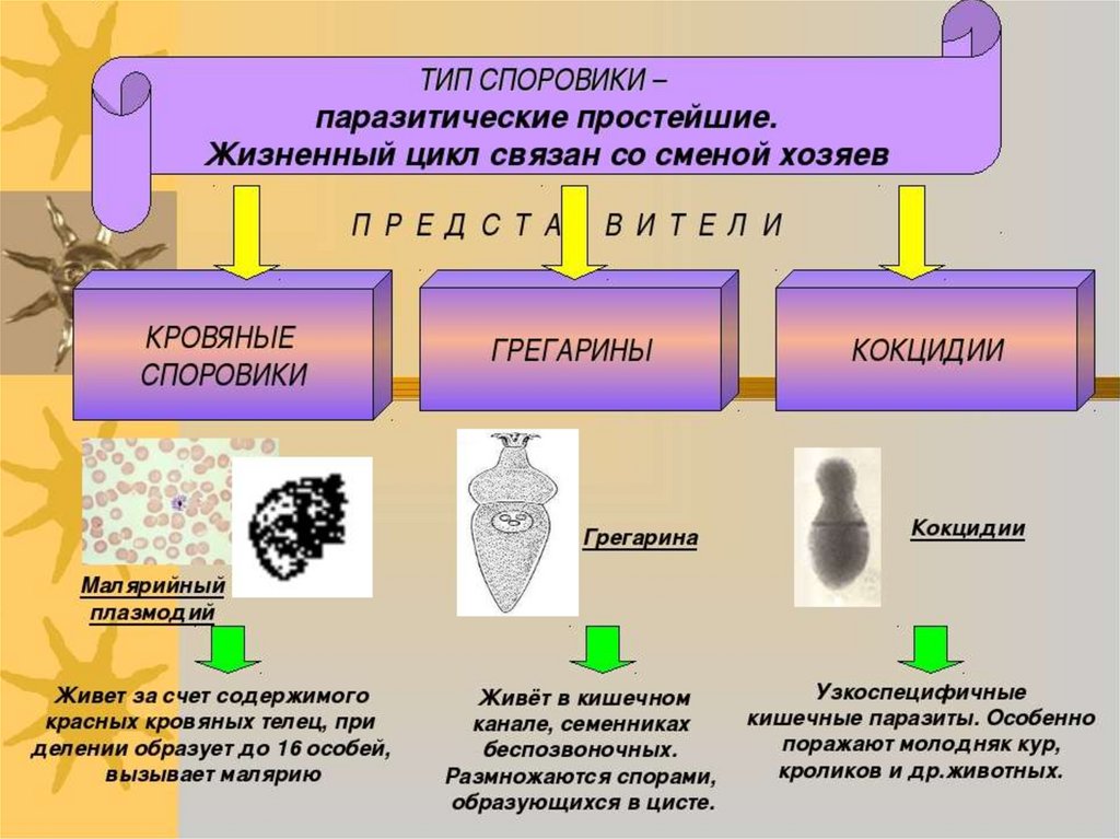 малярийный плазмодий, кокцидии,