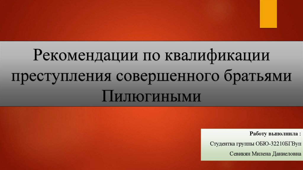 1. Рекомендации по квалификации преступления совершенного братьями Пилюгиными