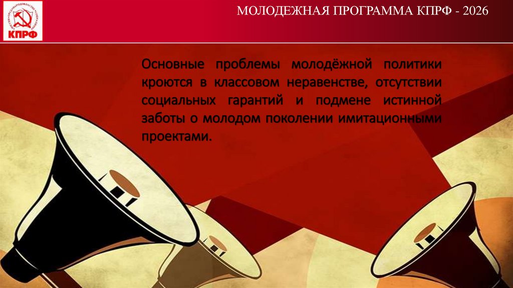 МОЛОДЕЖНАЯ ПРОГРАММА КПРФ - 2026Основные проблемы молодёжной политики