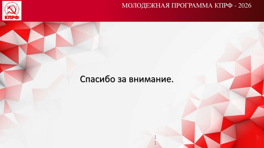 МОЛОДЕЖНАЯ ПРОГРАММА КПРФ - 2026Спасибо за внимание.