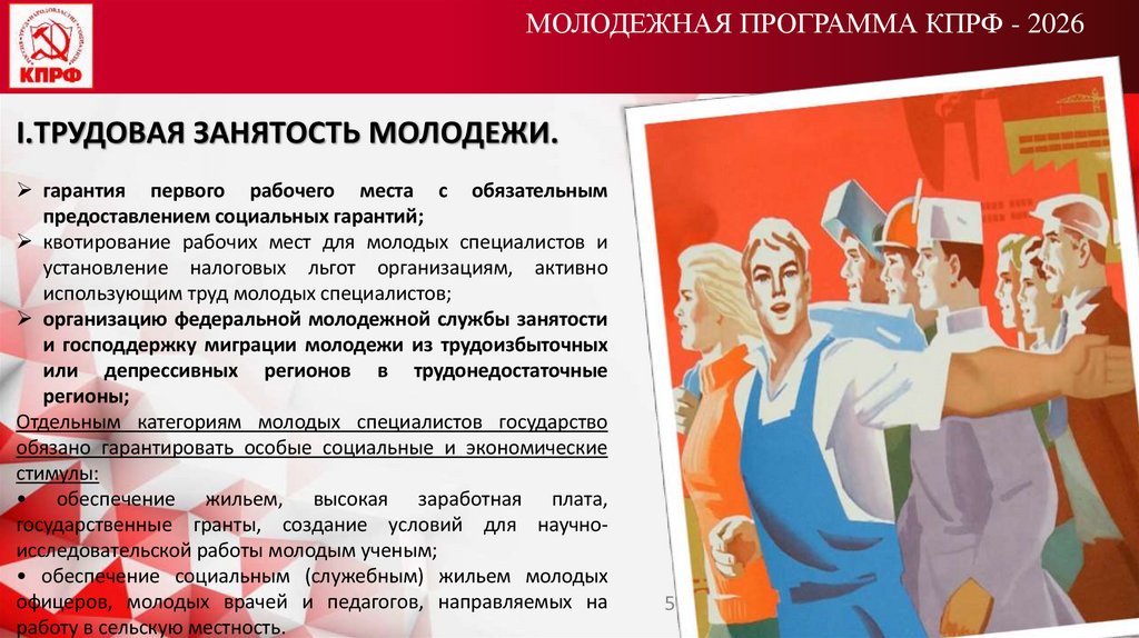 МОЛОДЕЖНАЯ ПРОГРАММА КПРФ - 2026I.ТРУДОВАЯ ЗАНЯТОСТЬ МОЛОДЕЖИ.