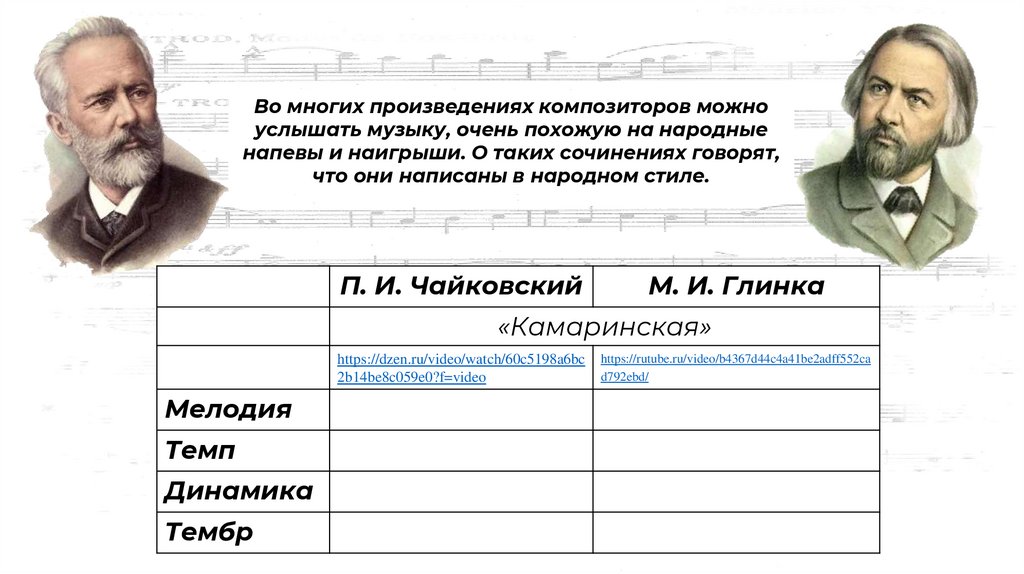 Во многих произведениях композиторов можноуслышать музыку, очень похожую на народные