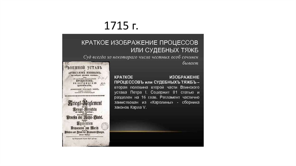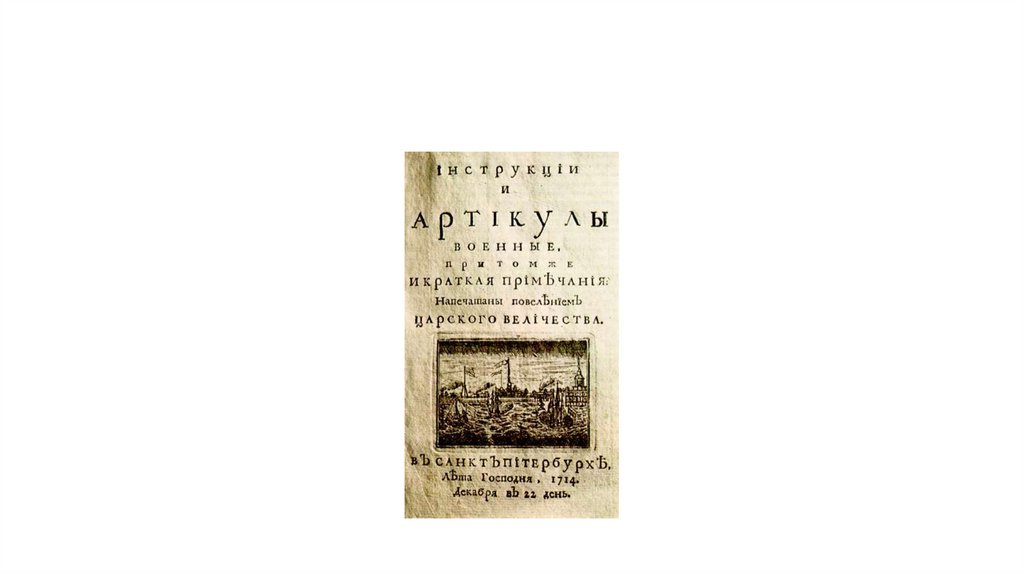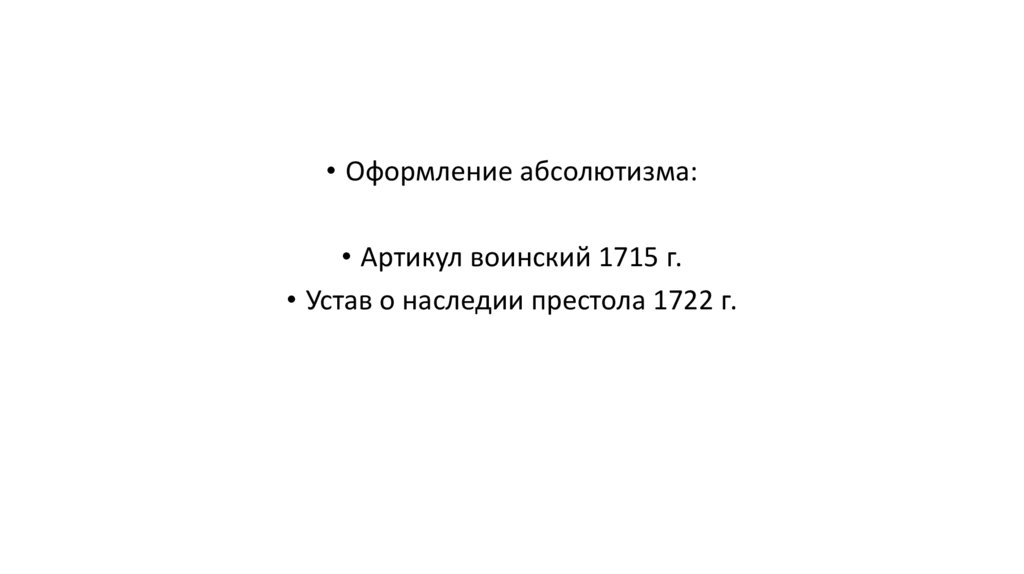 • Оформление абсолютизма:• Артикул воинский 1715 г.