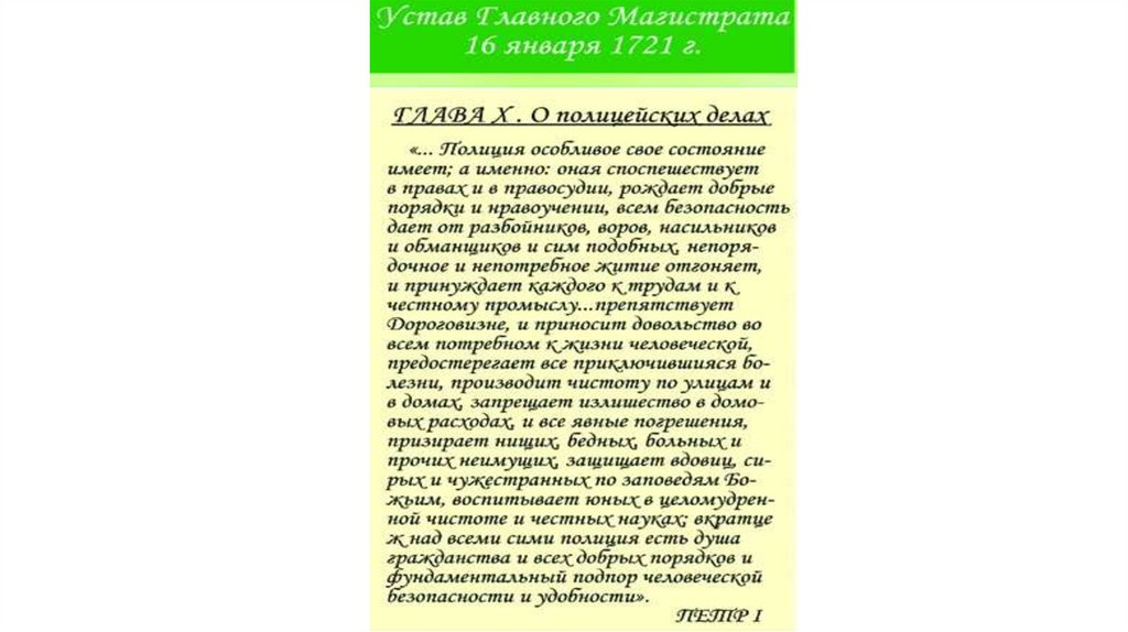 регламент 1721 г. и др.),