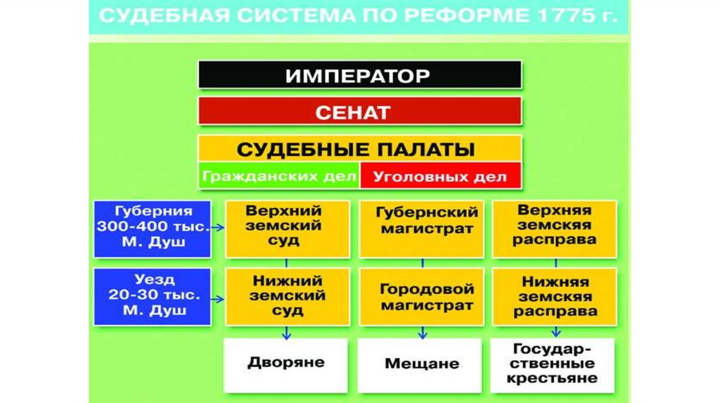 • Реформа областного (губернского) управления 1775 г. (23 губернии,