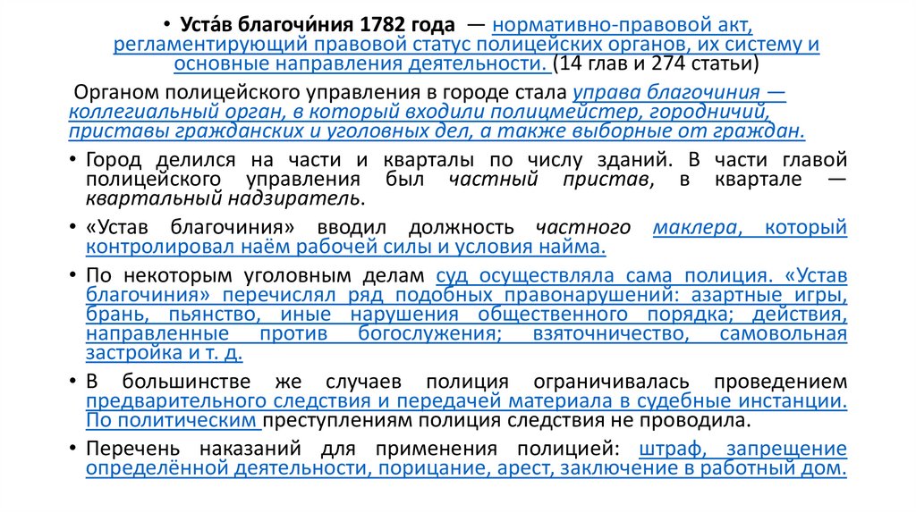 • По некоторым уголовным делам суд осуществляла сама полиция. «Устав