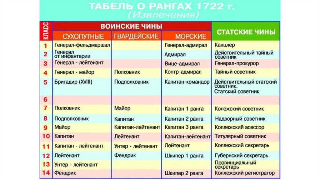 г., Указ о единонаследии 1714 г., Табель о рангах 1722 г., О форме