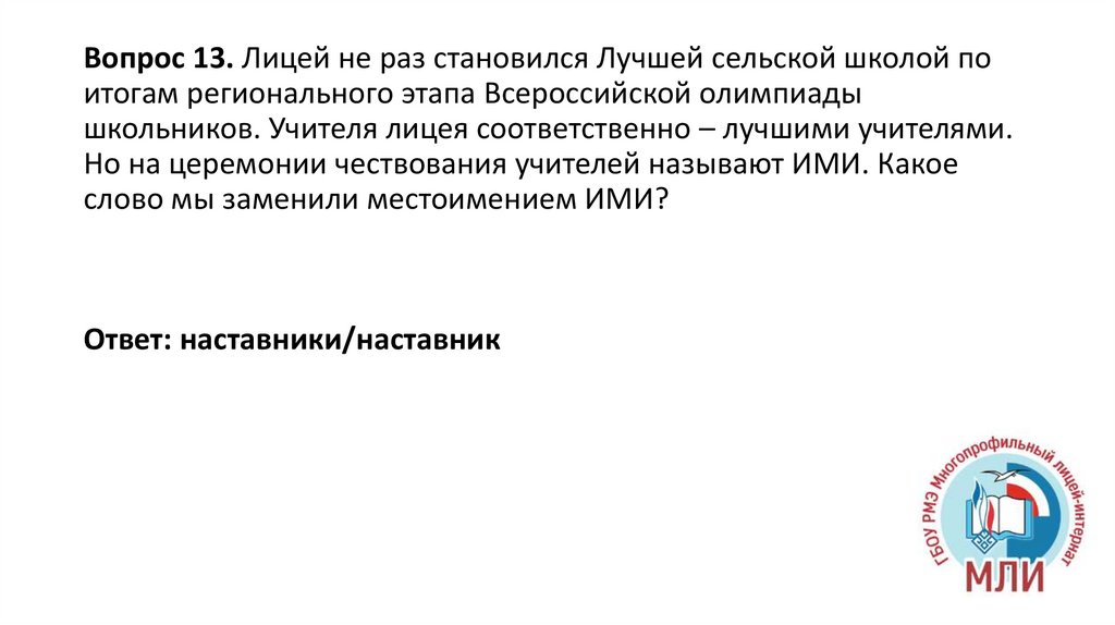 Вопрос 13. Лицей не раз становился Лучшей сельской школой поитогам регионального этапа Всероссийской олимпиады