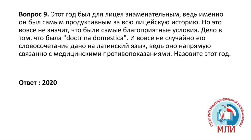 Вопрос 9. Этот год был для лицея знаменательным, ведь именноон был самым продуктивным за всю лицейскую историю. Но это