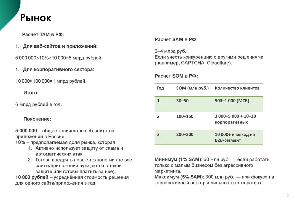Максимум (5% SAM): 300 млн руб. — при фокусе на