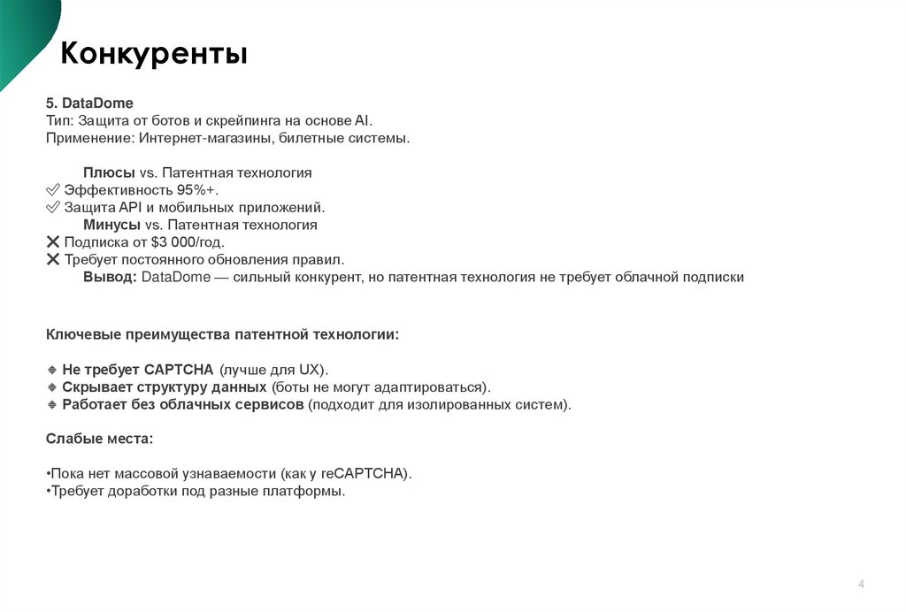 Вывод: DataDome — сильный конкурент, но патентная технология не требует облачной подписки