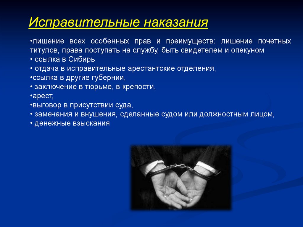 Исправительные наказания•лишение всех особенных прав и преимуществ: лишение почетных