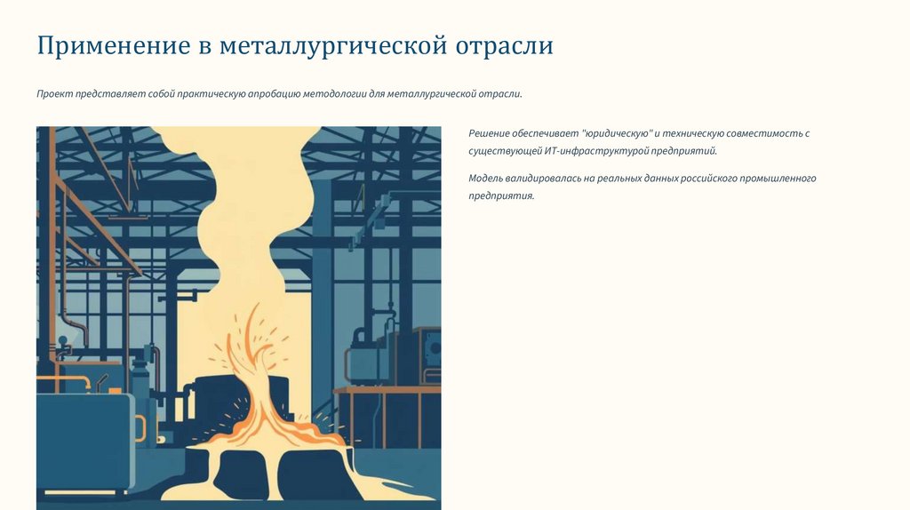 Применение в металлургической отраслиПроект представляет собой практическую апробацию методологии для металлургической отрасли.