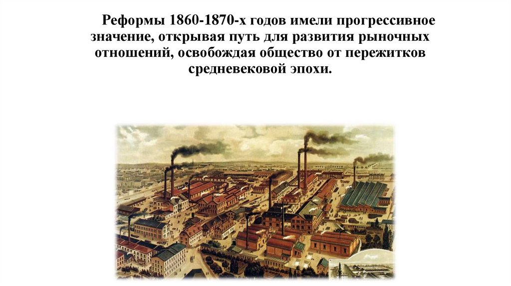 Реформы 1860-1870-х годов имели прогрессивноезначение, открывая путь для развития рыночных