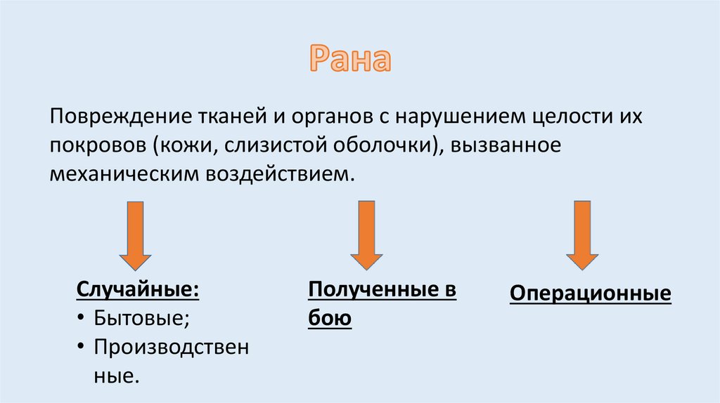 Повреждение тканей и органов с нарушением целости ихпокровов (кожи, слизистой оболочки), вызванное