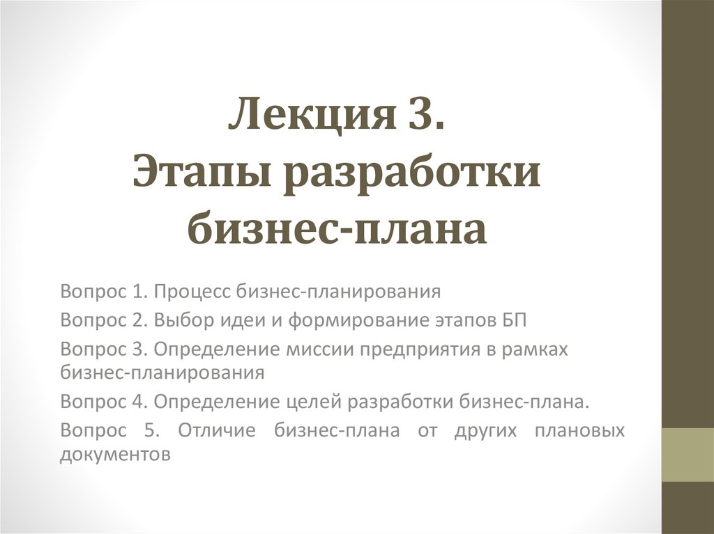1. Лекция 3. Этапы разработки бизнес-плана