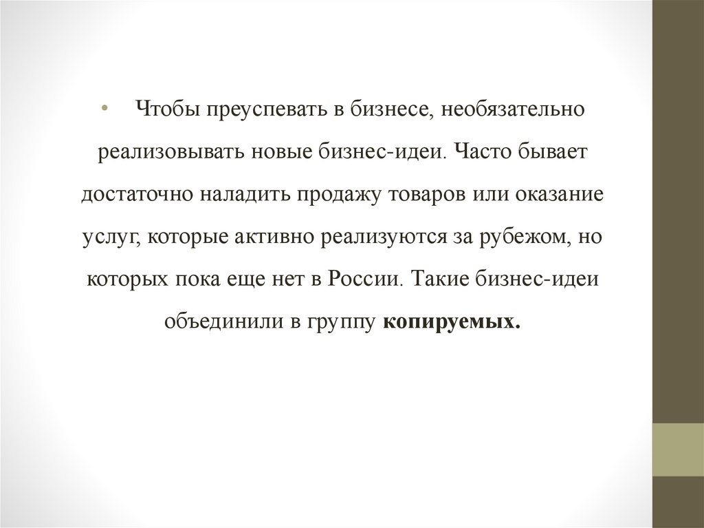 • Без хорошей идеи бизнес невозможен.