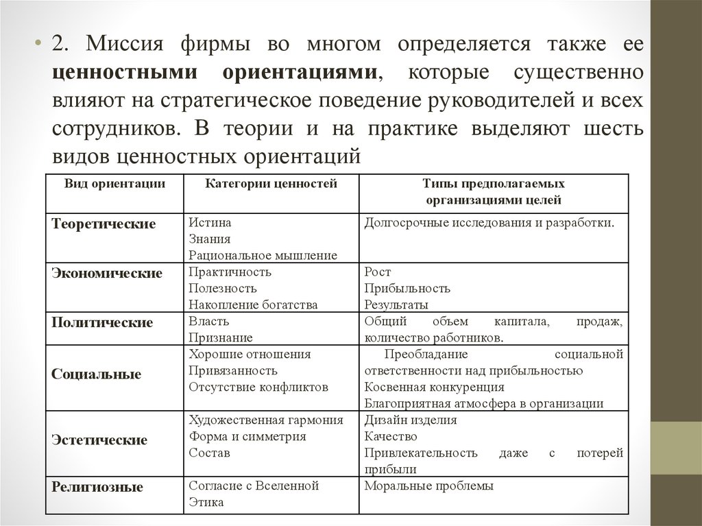 Вопрос 3. Определение миссии предприятия в рамках