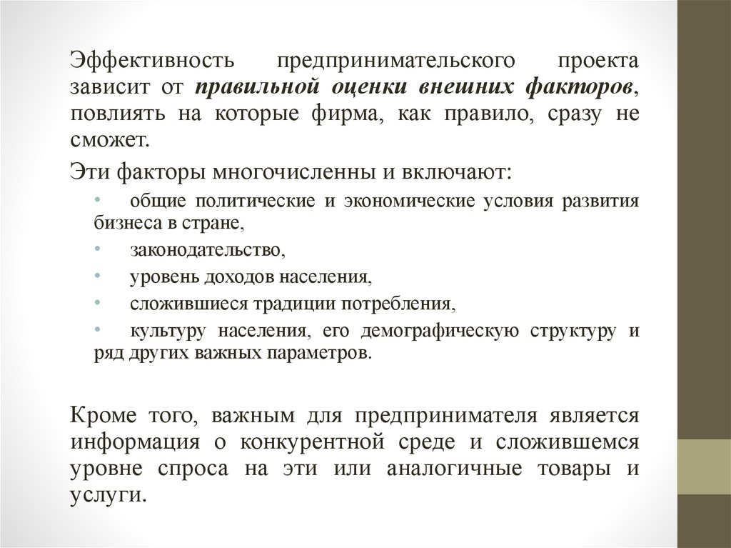 • общие политические и экономические условия развития