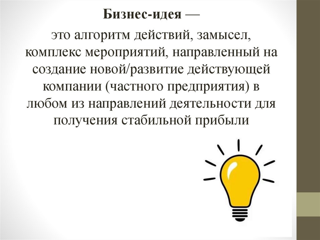 Бизнес-идея —это алгоритм действий, замысел,