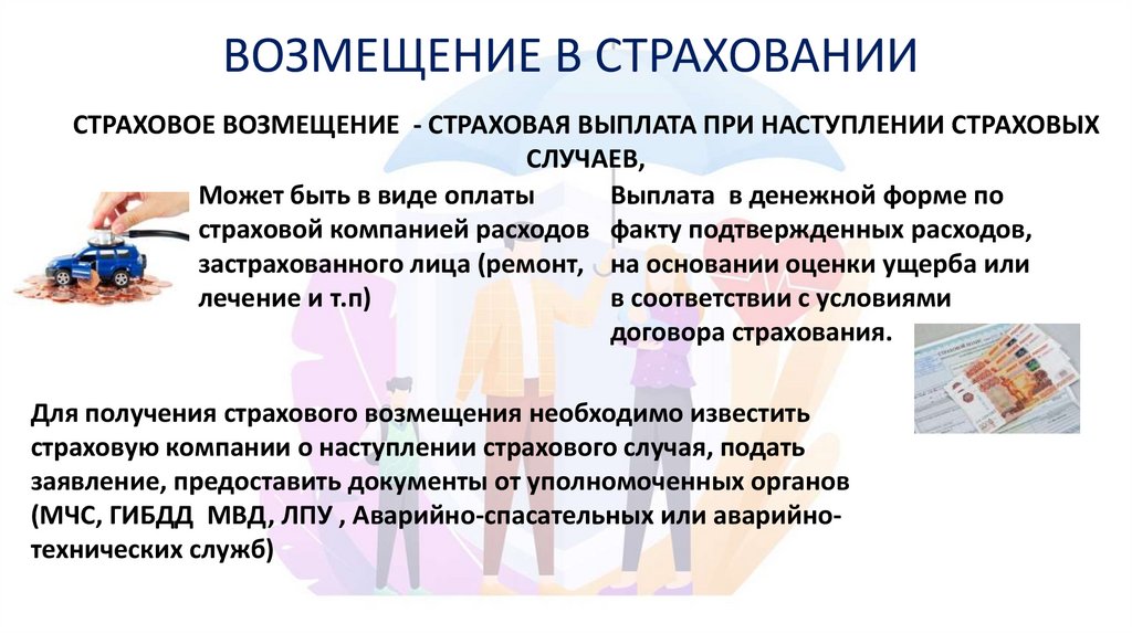ВОЗМЕЩЕНИЕ В СТРАХОВАНИИСТРАХОВОЕ ВОЗМЕЩЕНИЕ - СТРАХОВАЯ ВЫПЛАТА ПРИ НАСТУПЛЕНИИ СТРАХОВЫХ