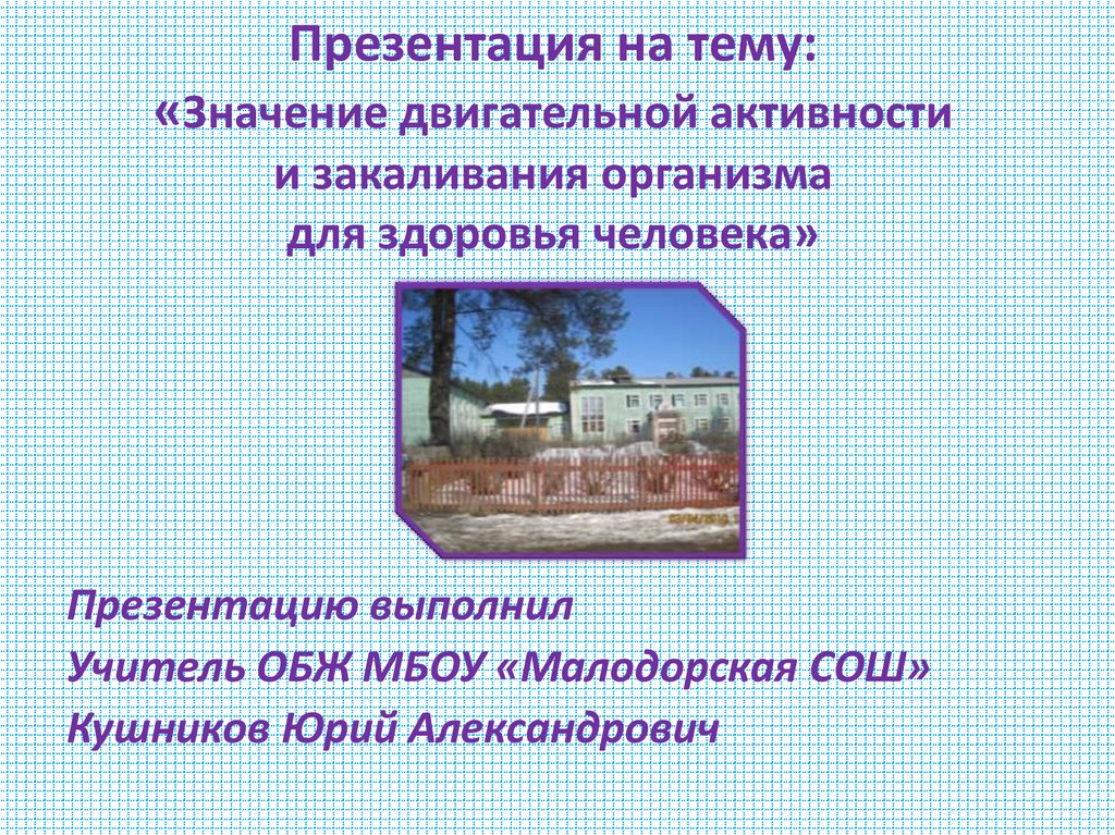 1. Презентация на тему: «Значение двигательной активности и закаливания организма для здоровья человека»
