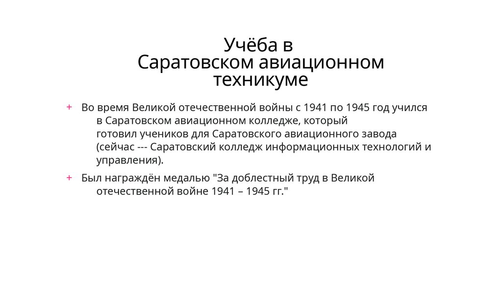 + Во время Великой отечественной войны с 1941 по 1945 год учился