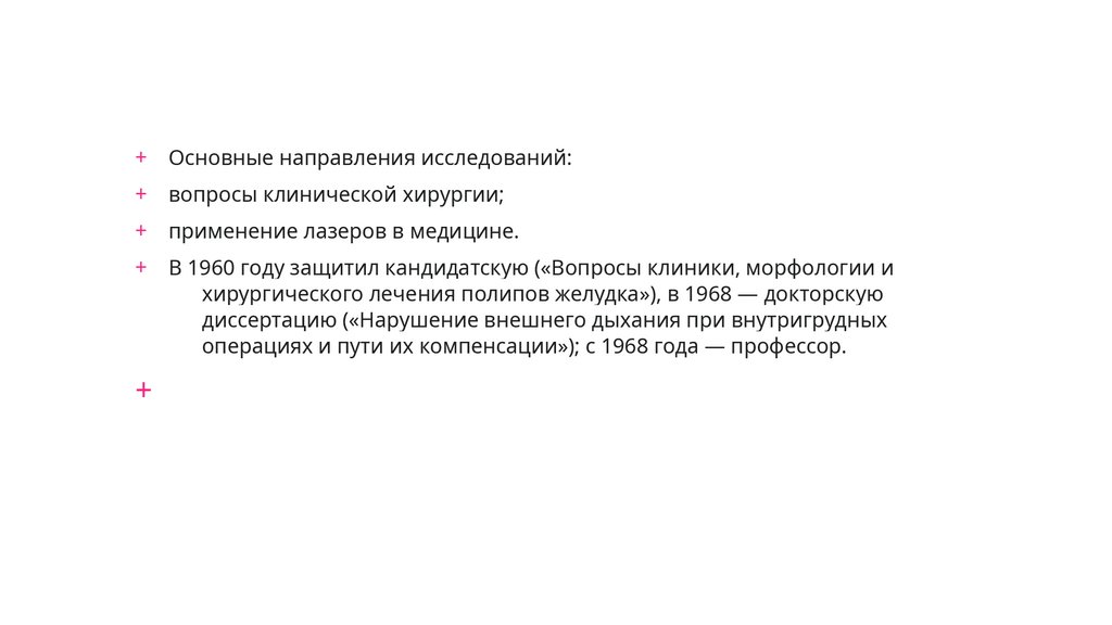 хирургического лечения полипов желудка»), в 1968 — докторскую