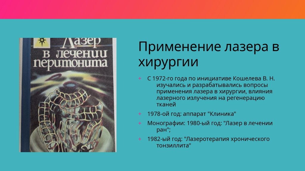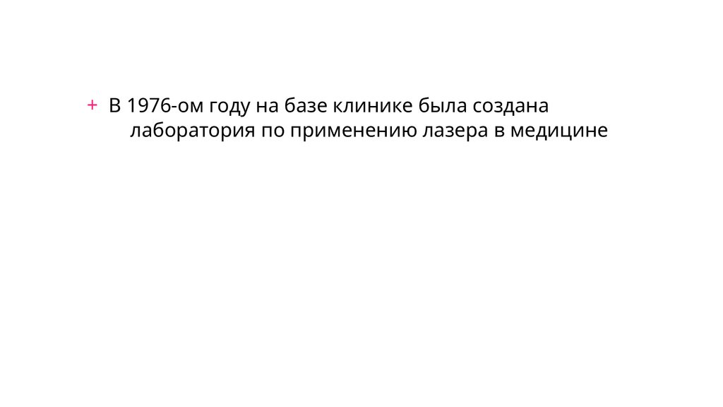 + В 1976-ом году на базе клинике была созданалаборатория по применению лазера в медицине