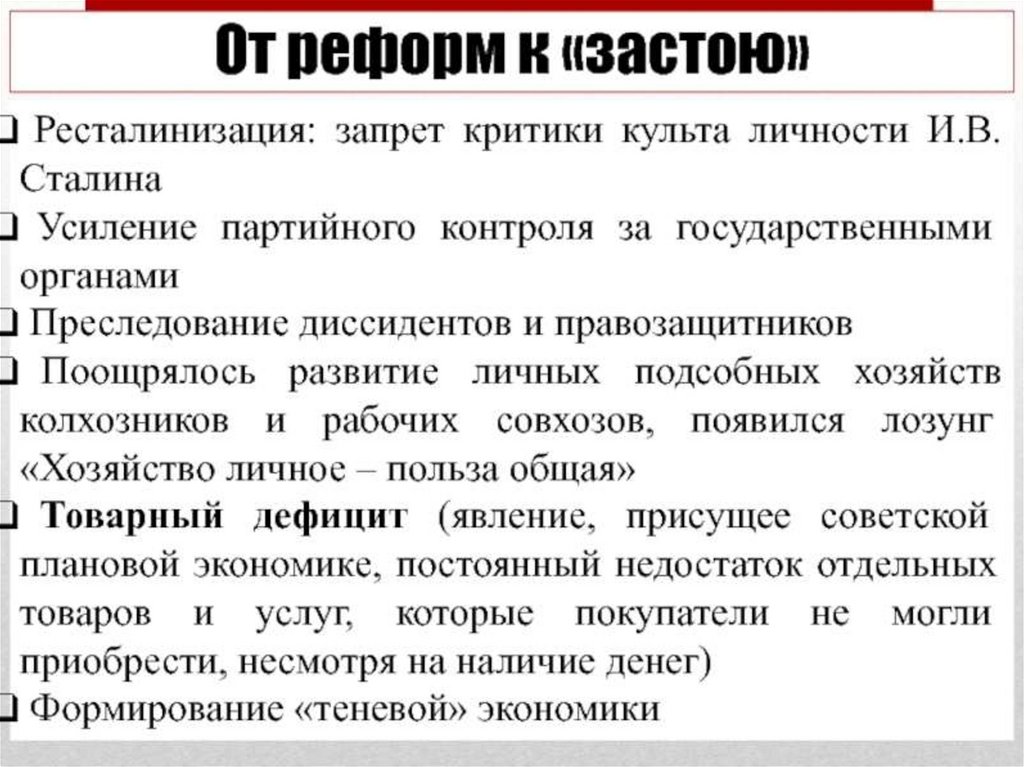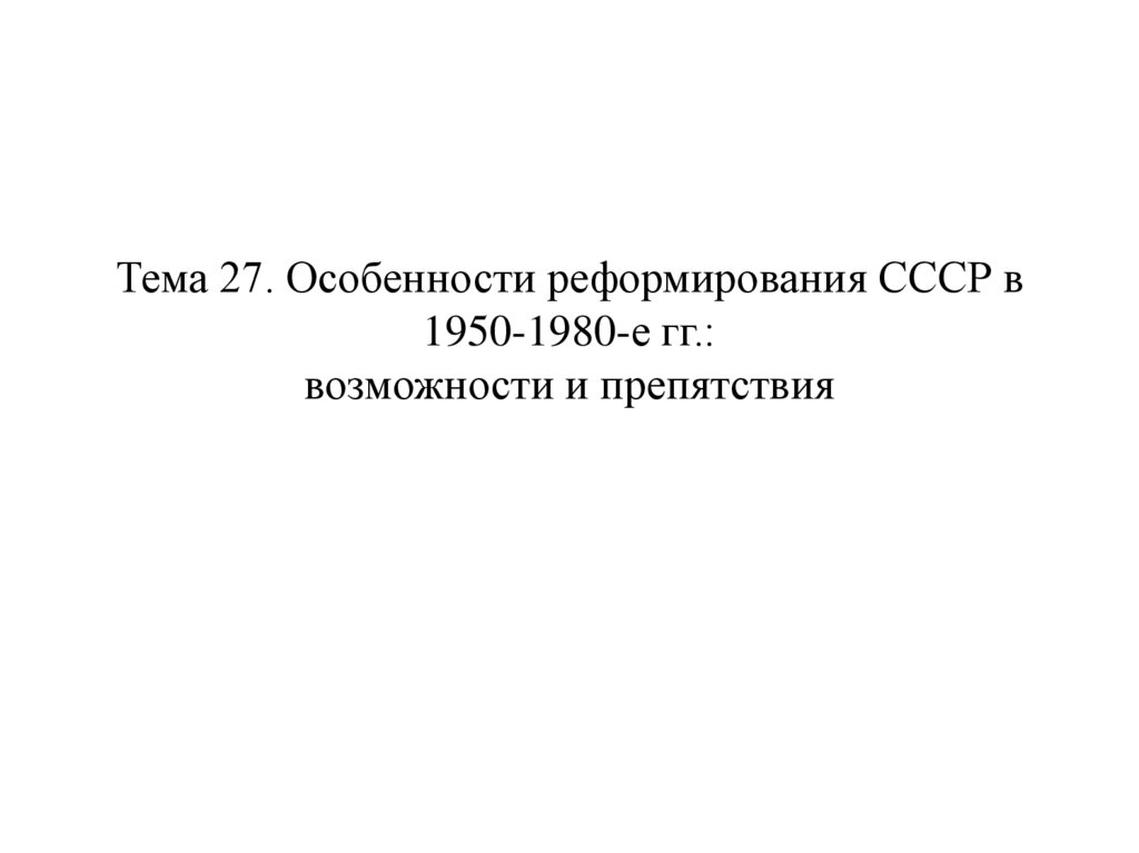 Тема 27. Особенности реформирования СССР в 1950-1980-е гг.: возможности и препятствия
