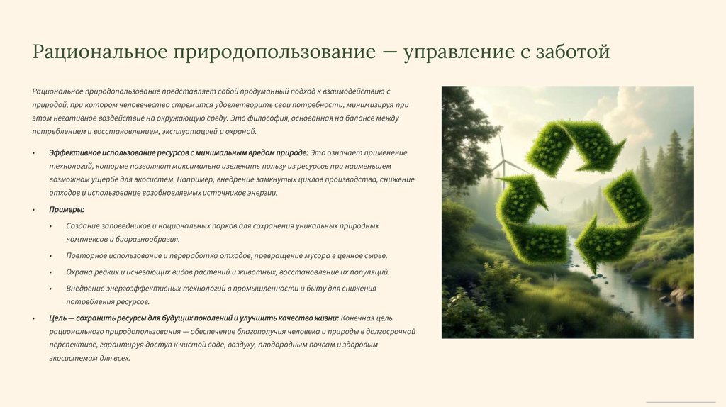 рационального природопользования — обеспечение благополучия человека и природы в долгосрочной