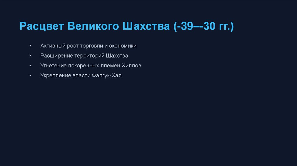 Расцвет Великого Шахства (-39–-30 гг.)Активный рост торговли и экономики