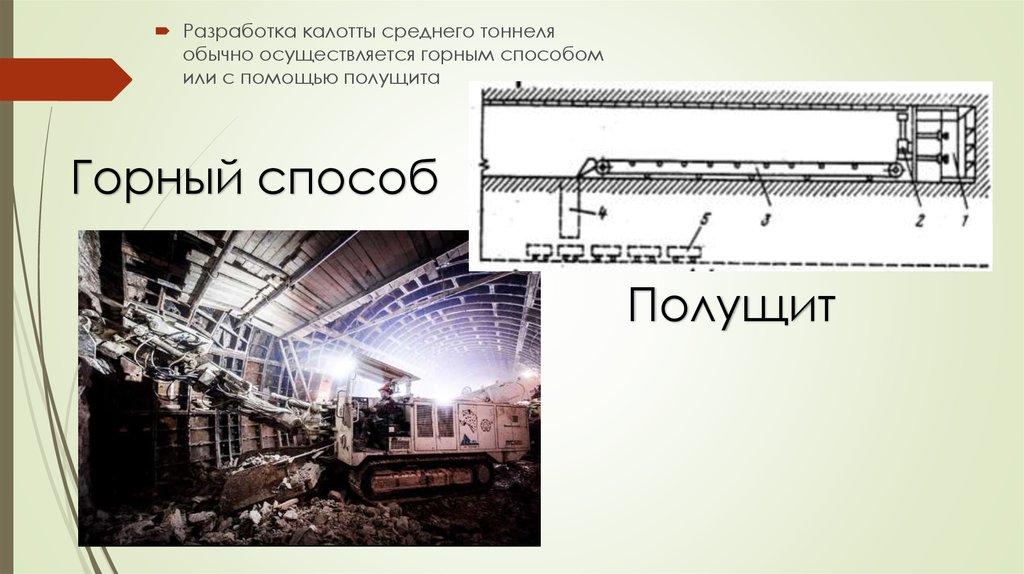 Разработка калотты среднего тоннеляобычно осуществляется горным способом