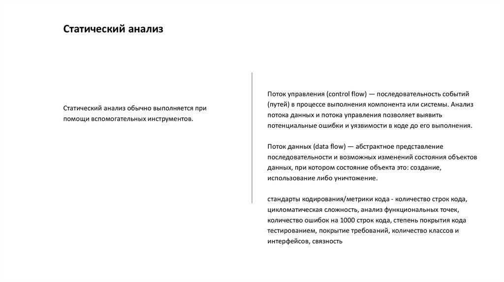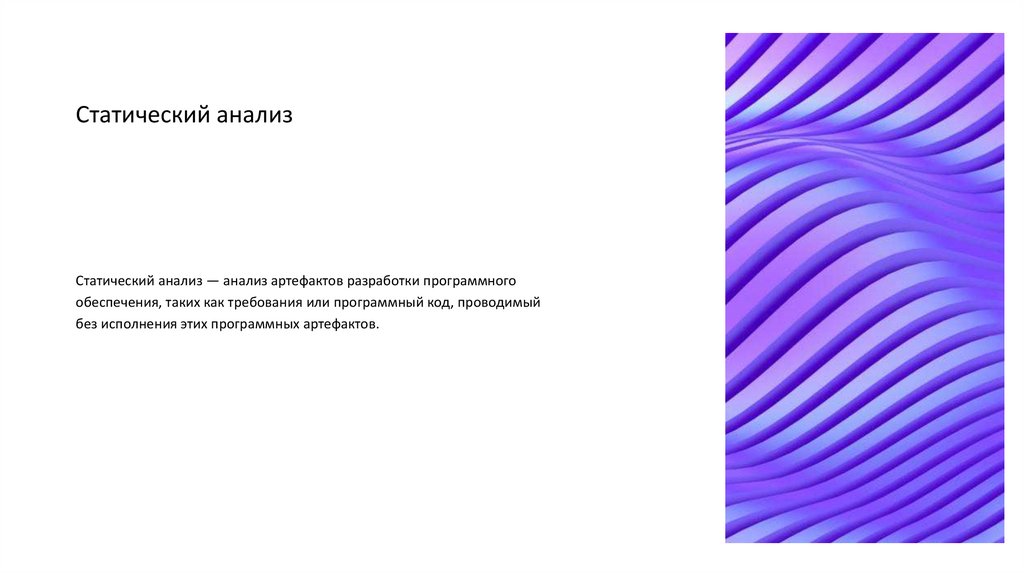 Статический анализСтатический анализ — анализ артефактов разработки программного