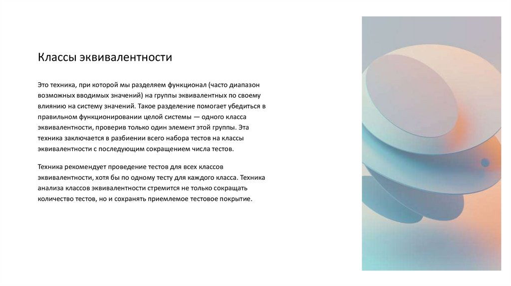 эквивалентности, хотя бы по одному тесту для каждого класса. Техника