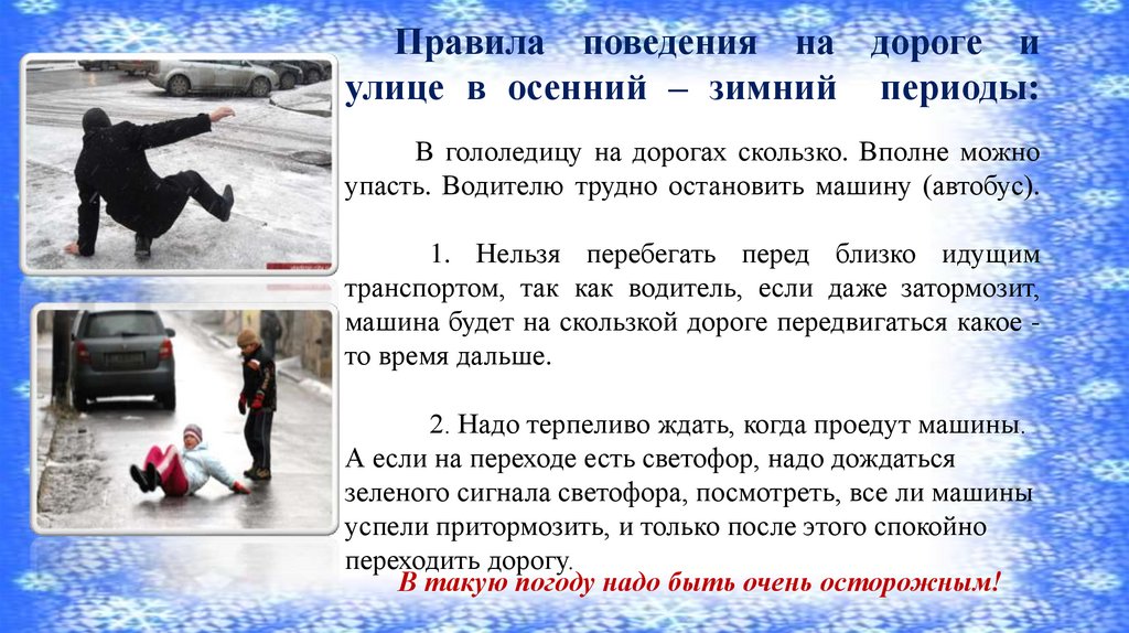 Правила поведения на дороге иулице в осенний – зимний периоды: