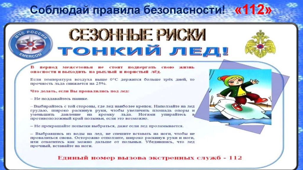 5.Прежде, чем ступить на лед, посмотрите, нет ли поблизости