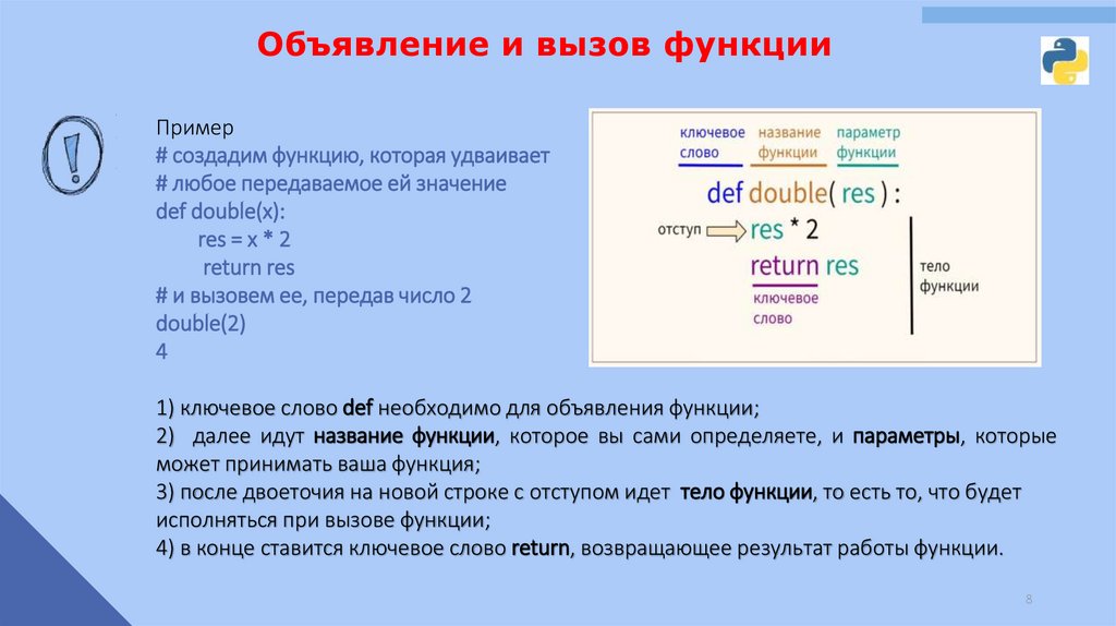1. Функции в Python, объявление и вызов.2. Составляющие функции.