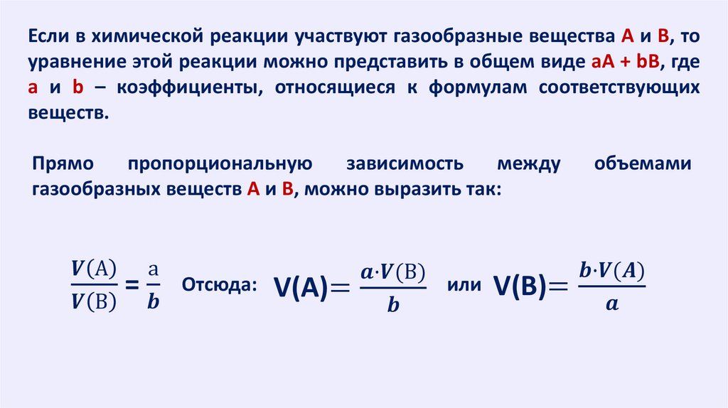 Если в химической реакции участвуют газообразные вещества А и В, тоуравнение этой реакции можно представить в общем виде аА + bВ, где
