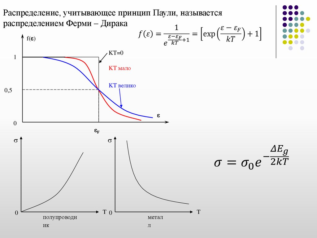 Распределение, учитывающее принцип Паули, называетсяраспределением Ферми – Дирака