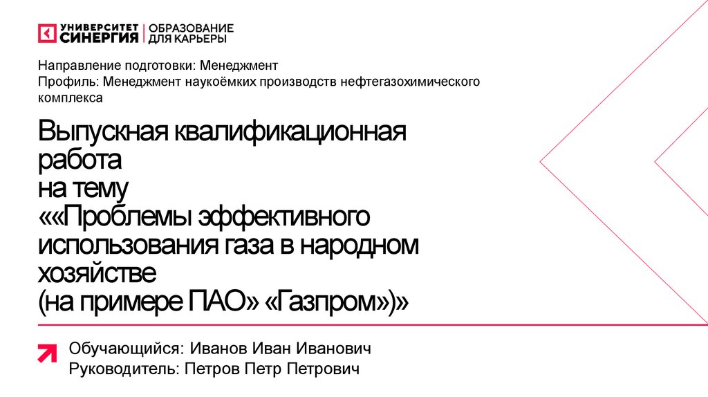 Направление подготовки: МенеджментПрофиль: Менеджмент наукоёмких производств нефтегазохимического