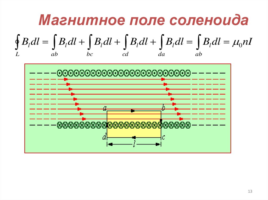 Магнитное поле соленоидаB dl B dl B dl B dl B dl B dl nI